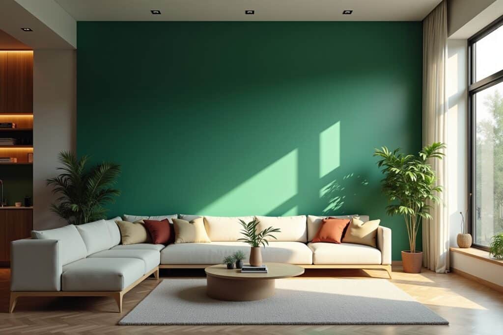 Die Kunst der Akzentwand liegt oft im Zusammenspiel mit den umliegenden Farben und Möbeln: