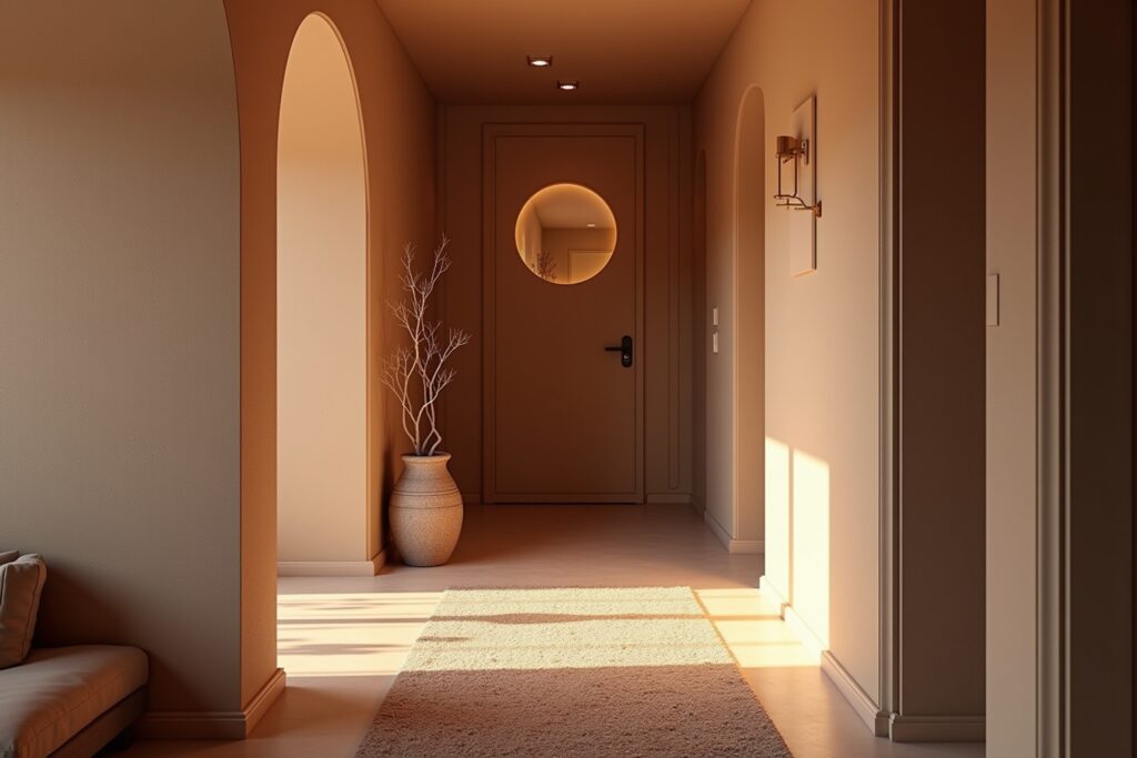 Helle Farben wie Weiß, Beige und Pastelltöne reflektieren das Licht und lassen einen kleinen Flur größer und offener wirken. Vermeide dunkle Farben, da sie den Raum optisch verkleinern können.